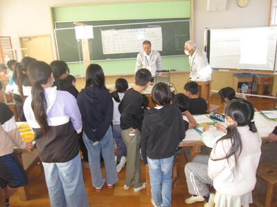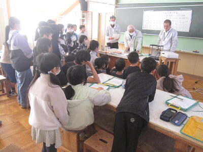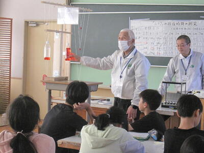 12/22 5年生の理科「ふりこの性質」の学習で、日立理科クラブの方々に授業支援に来ていただきました。ふりこの振れ幅や重さ、長さの条件を変えると往復時間はどうなるか、実験をして考えました。