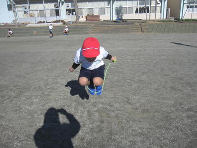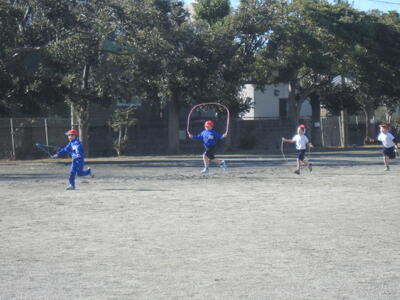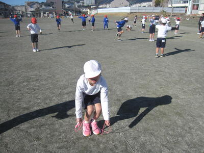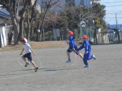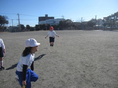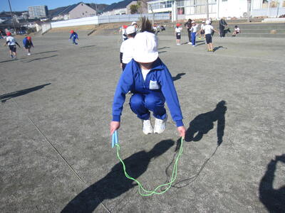 2年生 なわとびを頑張っています! 投稿: 承認者 (01/09) 1/9 今日の最低気温は-3℃。寒さが本格的になってきました。そんな中、大みか小のみんなは元気に遊んだり、体育の授業に励んだりしています。 2年生は、体育でなわとびを頑張っていました。縄を半分の長さにして跳んだり、走りながら跳んだり、いろいろな跳び方にチャレンジしたり・・・「もうちょっとだよ。」「がんばれ!」と、友達と声をかけ合いながら、練習に励んでいました。