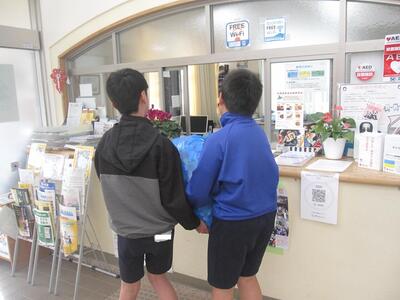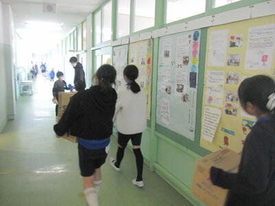 1/28 大みか小学校では、エコキャップ運動を行っています。エコキャップとは、ペットボトルのキャップのことで、約800個(約2kg)でポリオワクチン1人分となります。集会委員会が各クラス、職員室、昇降口に回収箱を設置し、たくさんのエコキャップが集まりました。集まったエコキャップは、大みか交流センターから地域の方を通して送っていただくことになっています。今日は集まったエコキャップを集会委員の6年生が大みか交流センターに運びました。