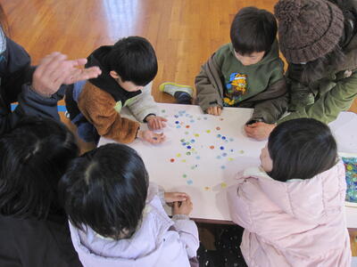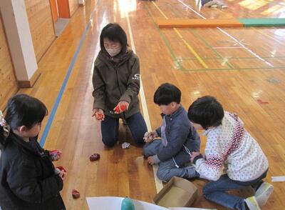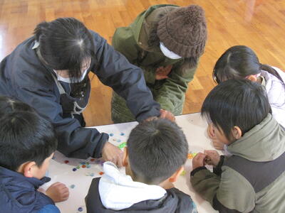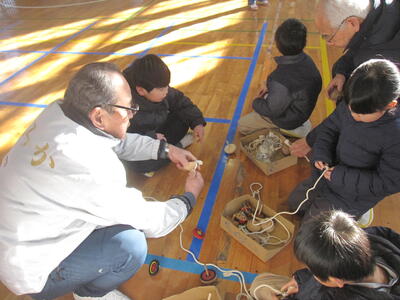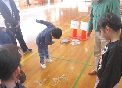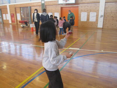 1年生 昔遊びを楽しみました 投稿: 承認者 (01/30) 1/30 1年生が、地域の方々に昔から伝わる遊びを教わったり、一緒に遊んだりしました。グループに分かれて、羽根つき、こま、お手玉、おはじき、めんこの5つの遊びを体験しました。 はじめは難しくても、教えていただくうちにコツをつかんだようです。「できた!」「見て見て!」と、楽しそうな声が響き渡っていました。地域ボランティアの皆様、ありがとうございました。