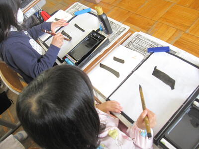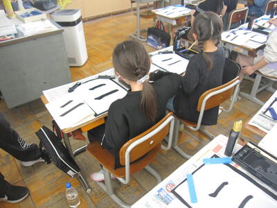 3年生 毛筆にチャレンジ! 投稿: 承認者 (04/16) カテゴリー: 授業の様子 4/15 3年生の書写では、毛筆を使った学習が始まりました。今日は毛筆を使って「二」の文字を書く練習をしました。みんな真剣な表情で、筆遣いに気を付けながら集中して書いていました。