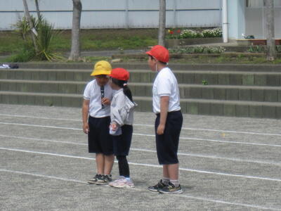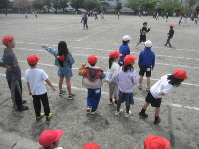集会委員から「みんなで遊ぼう」の説明があり、いよいよ縦割り班で遊びます!鬼ごっこ、ケイドロ、だるまさんがころんだなど、どの班も夢中になって遊んでいました。