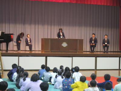 元気いっぱいに入場し、校長先生のお話や6年生の歓迎の言葉もしっかりとした態度で聞いていました。